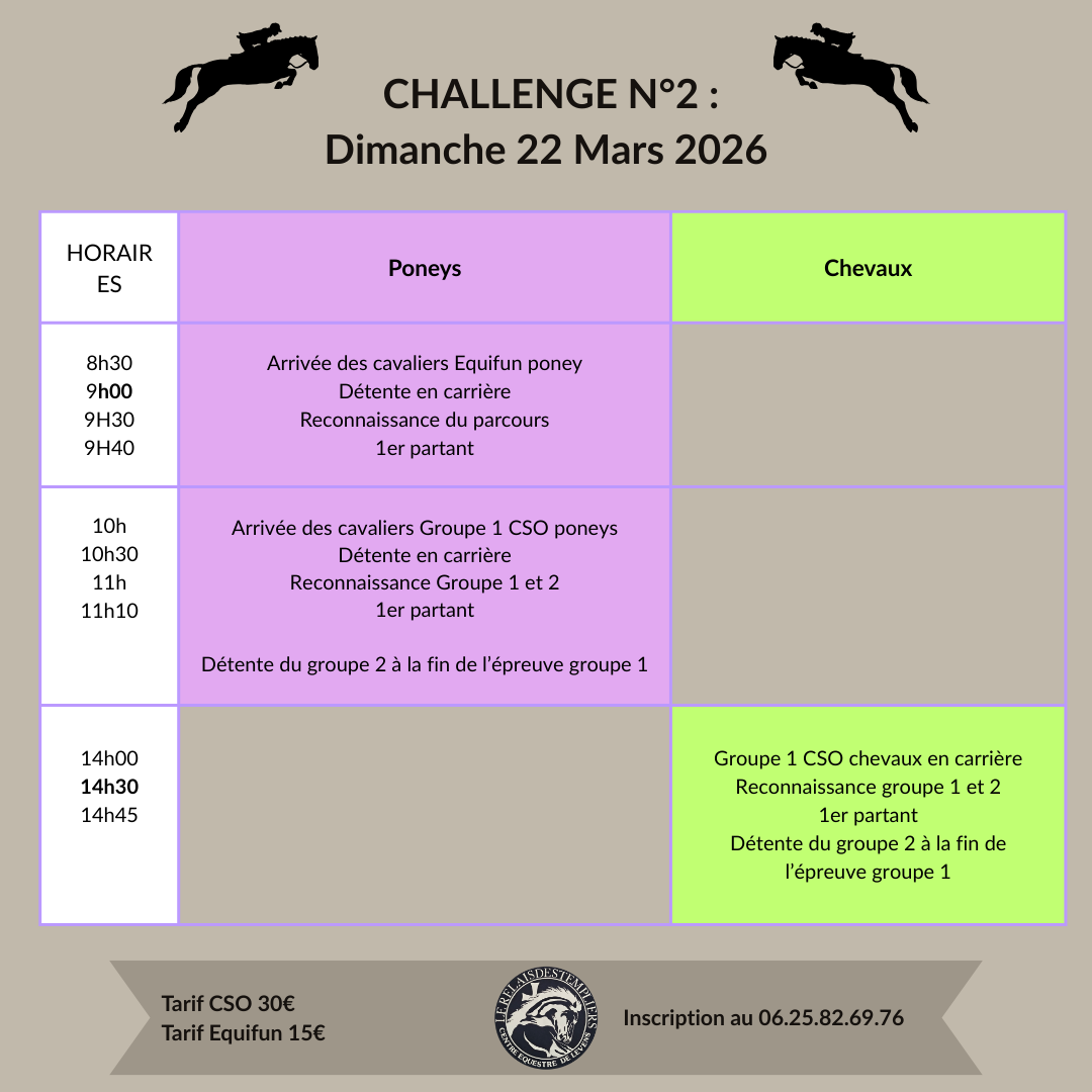 Challenge 2 Dimanche 22 Mars 2026 : Planning de la journée