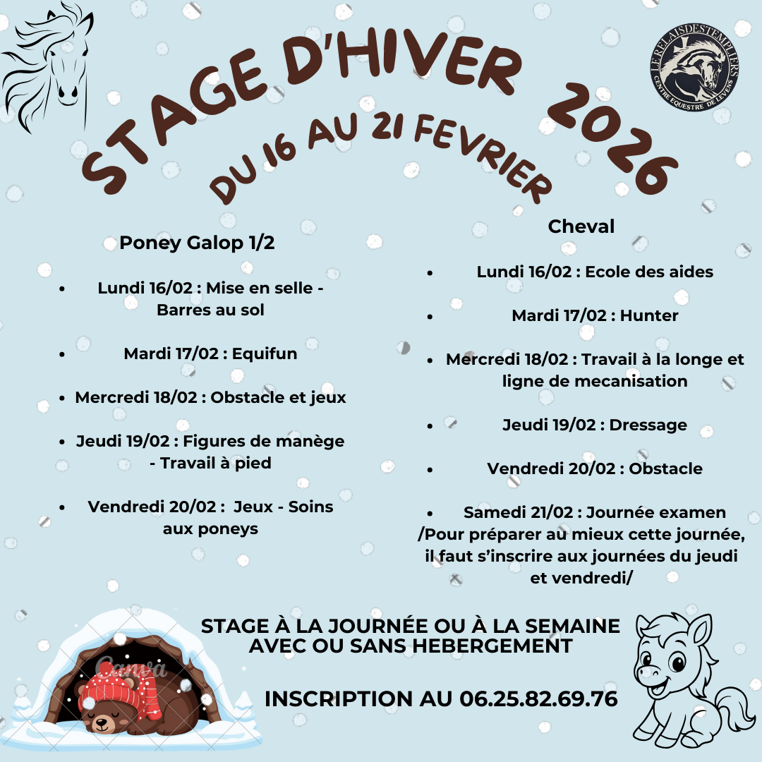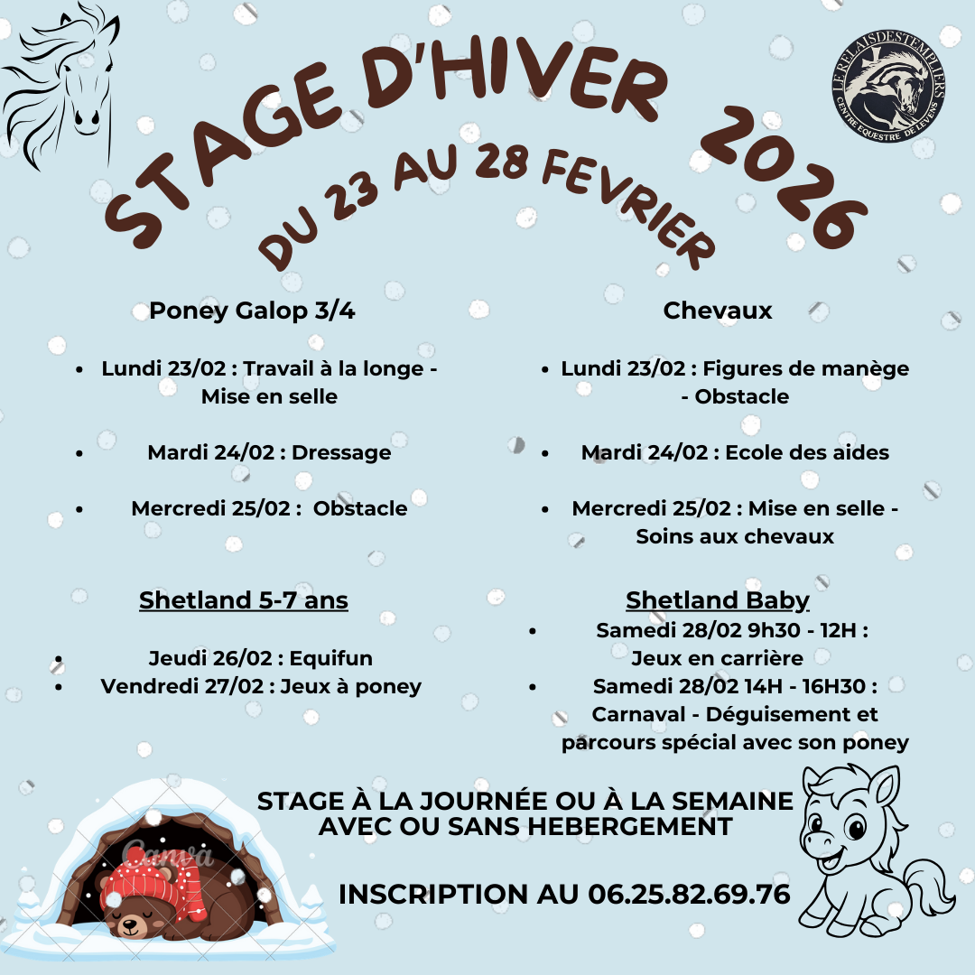 ! Stage du 16 au 21 février et Stage du 23 au 28 février
